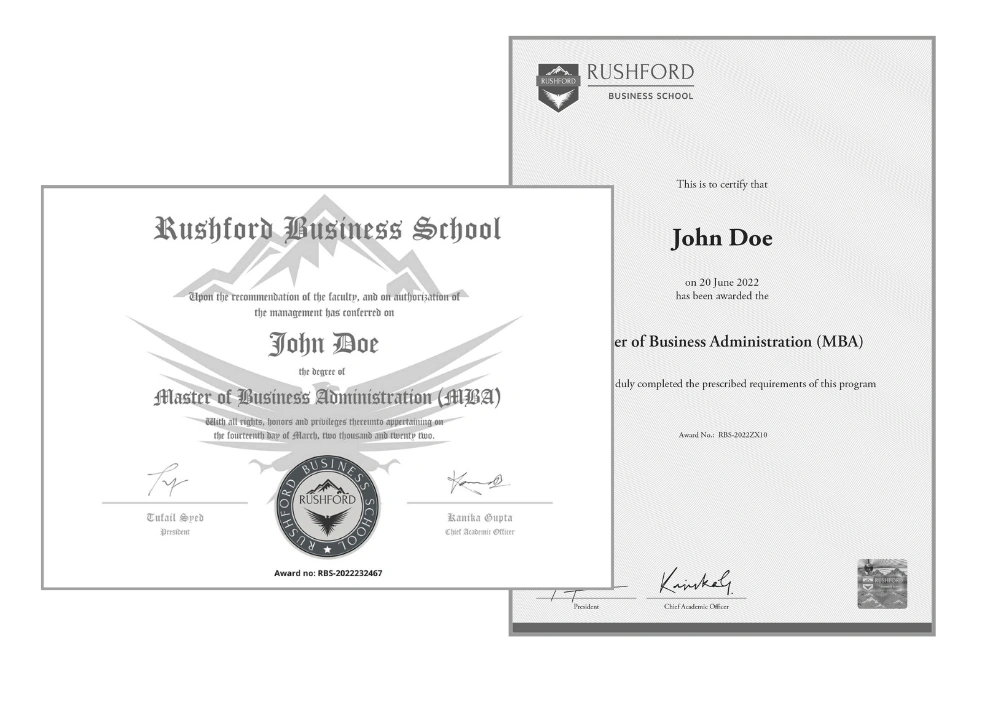 Rushford Business School offers Online MBA and DBA programs for working professionals and business leaders. The Online MBA is a 1.6 years long postgraduate degree, while the DBA is a doctoral level program mainly designed for senior professionals and managers. These programs are career oriented and offers specializations like Finance, Marketing, Human Resource, International Business, Project Management, Strategy, Leadership and more.